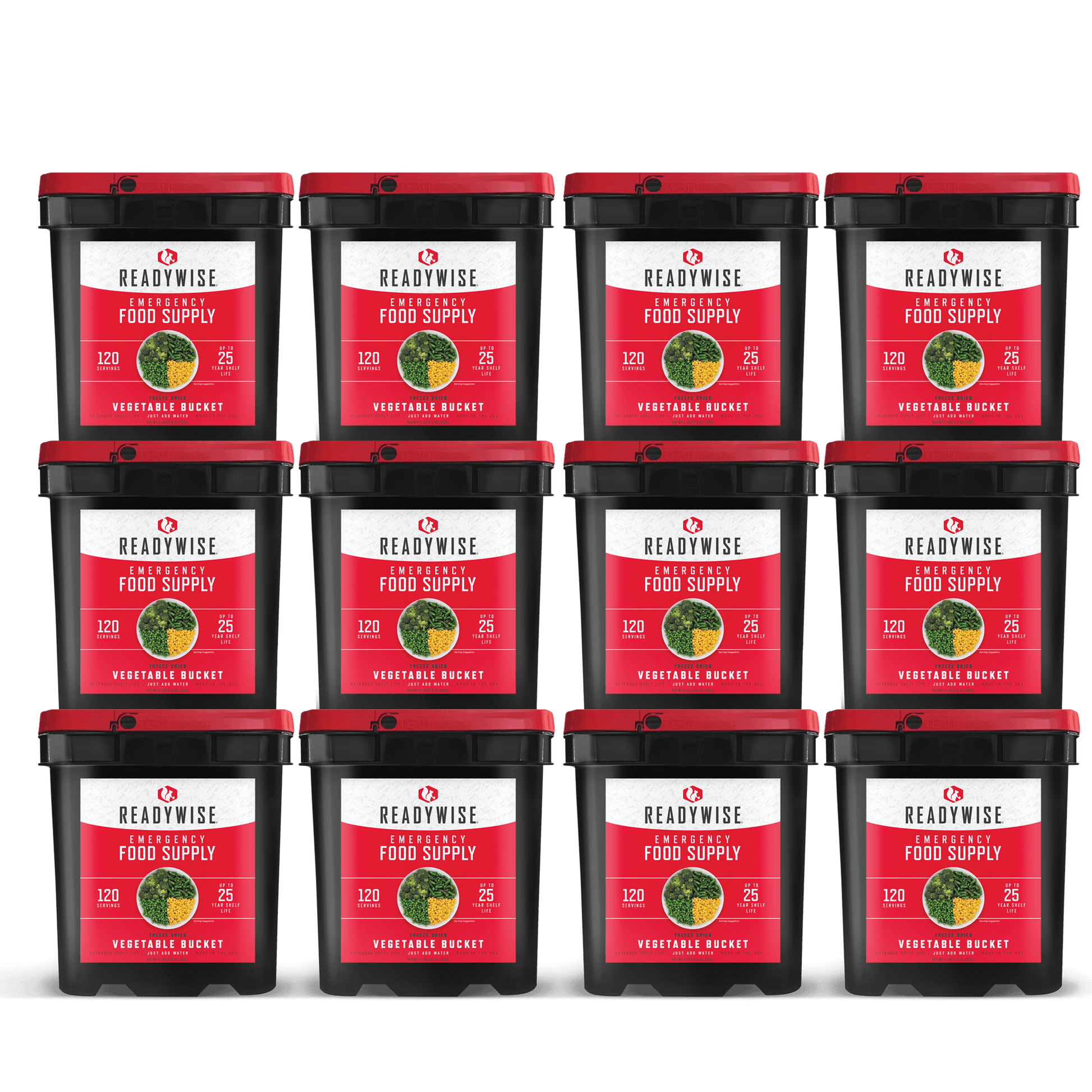 12 buckets of Vegetables. A Variety of Corn, Peas, Broccoli and Green Beans
