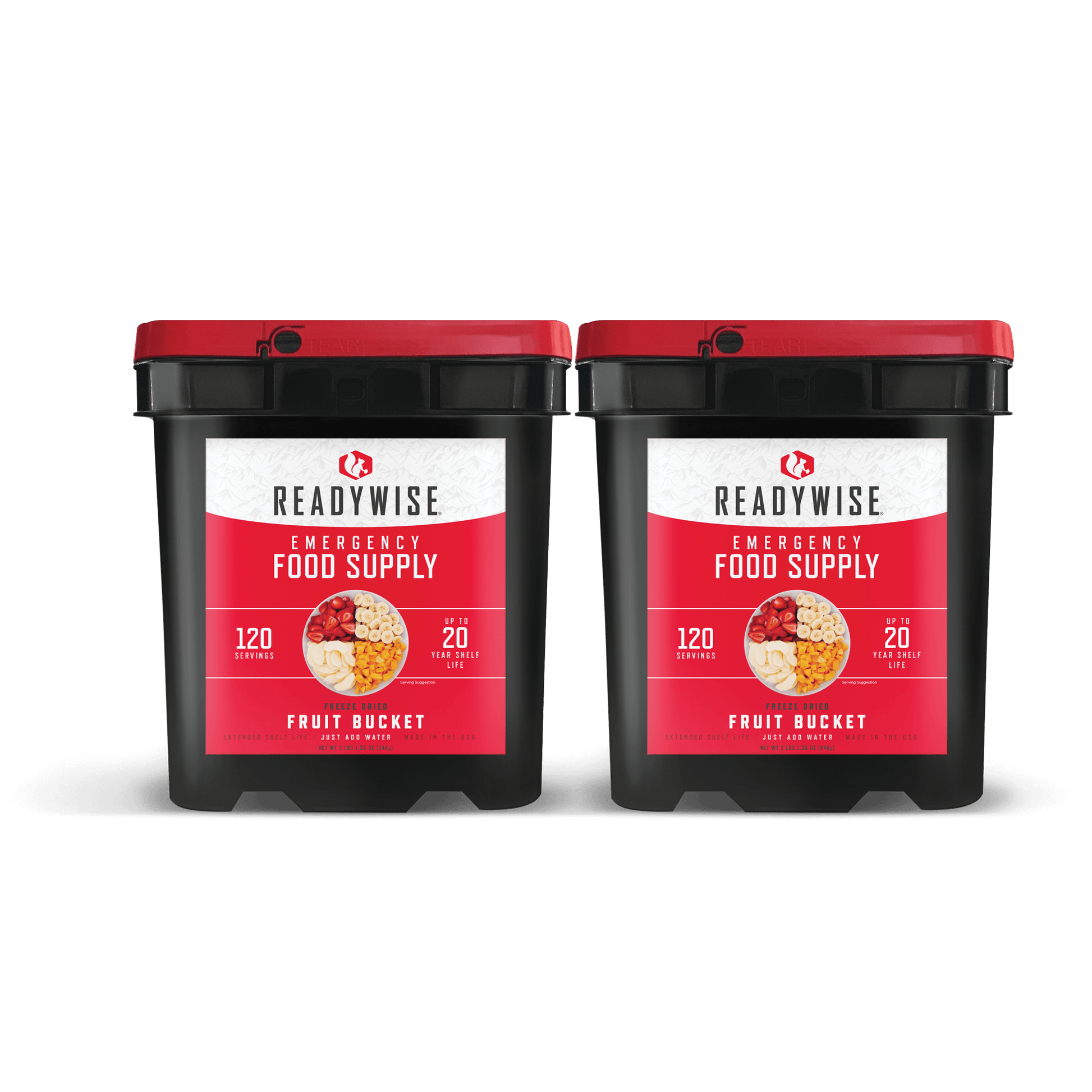 2 buckets of Fruit. A Variety of bananas, apples, strawberries and peaches