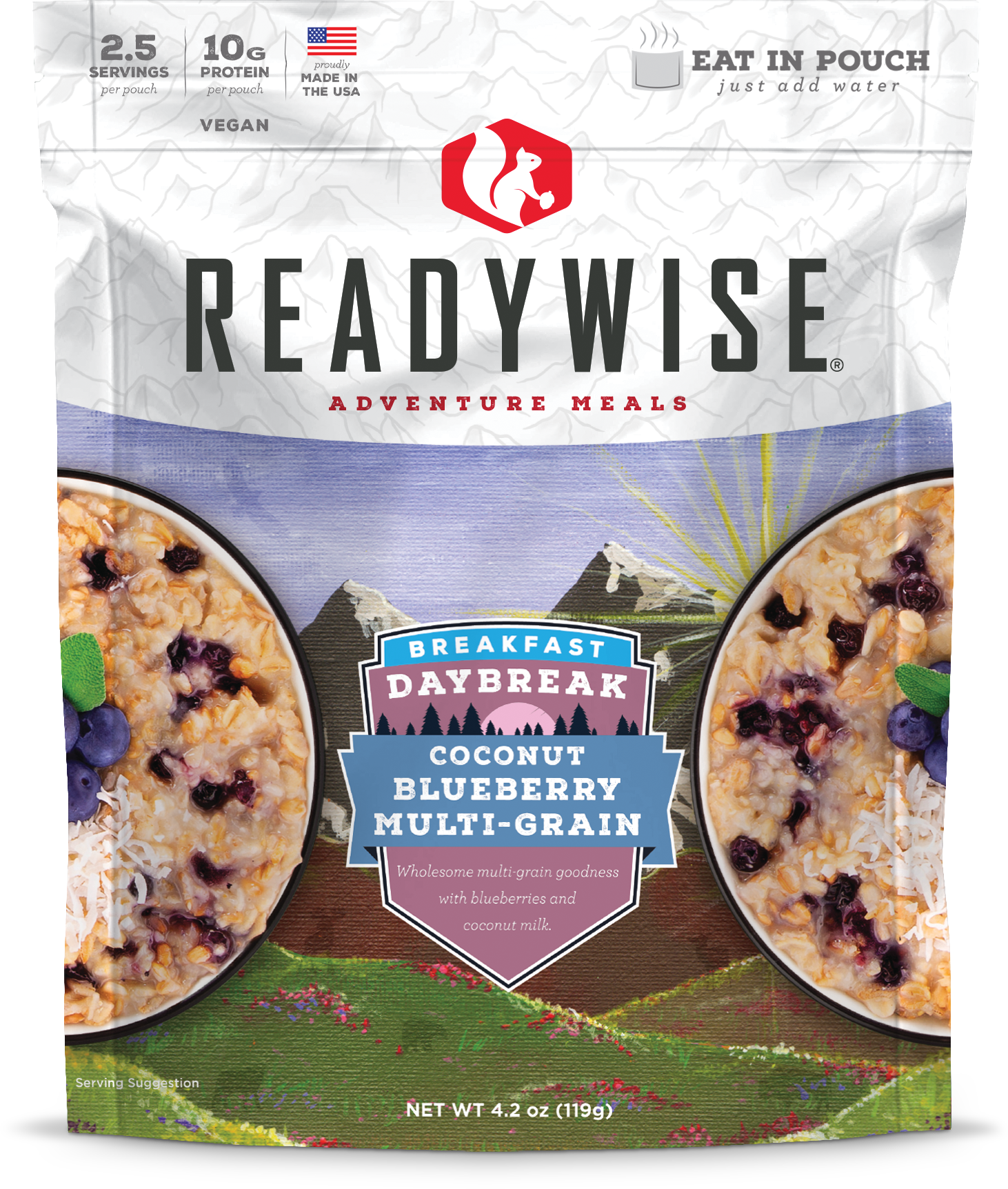 Each pouch of our Coconut Blueberry Multigrain contains 2 servings and is resealable. These pouches are lightweight making them easily portable on any outdoor adventure. Just eat directly from the pouch!