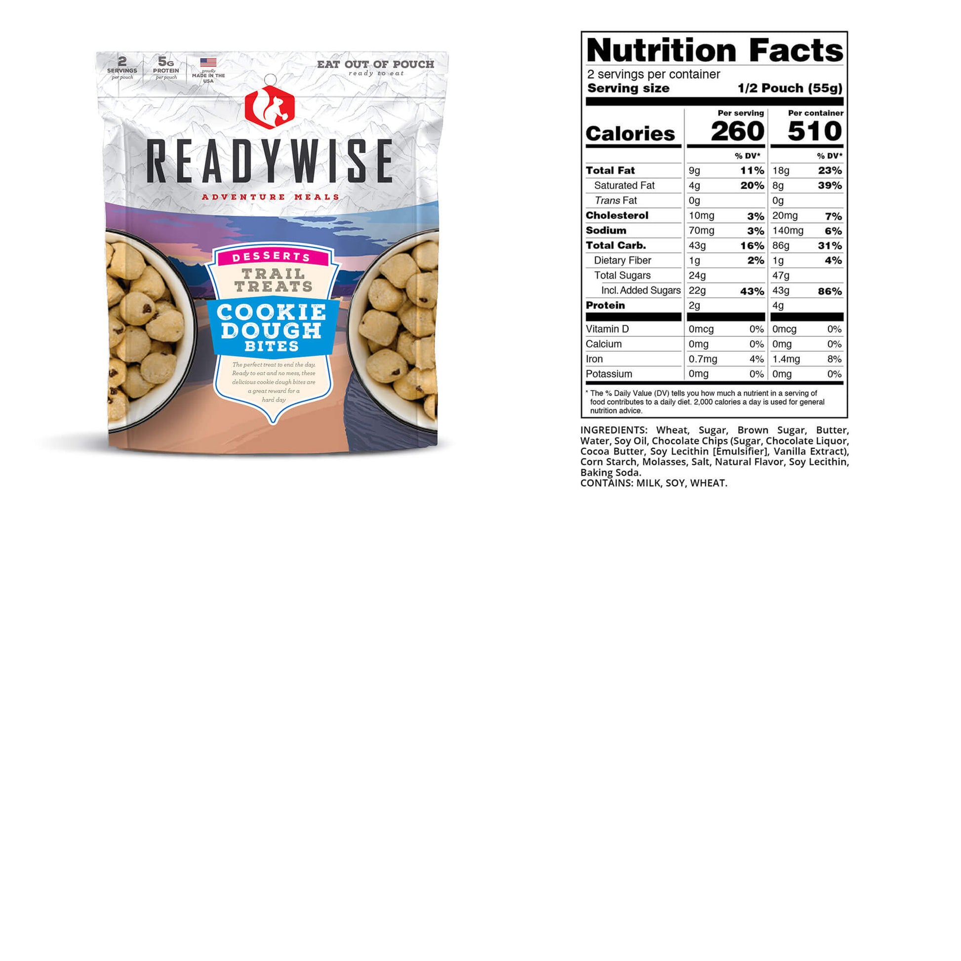 Each pouch of our Trail Treats Cookie Dough Snacks contains 2 servings and is resealable. These pouches are lightweight making them easily portable on any outdoor adventure. Just eat directly from the pouch!