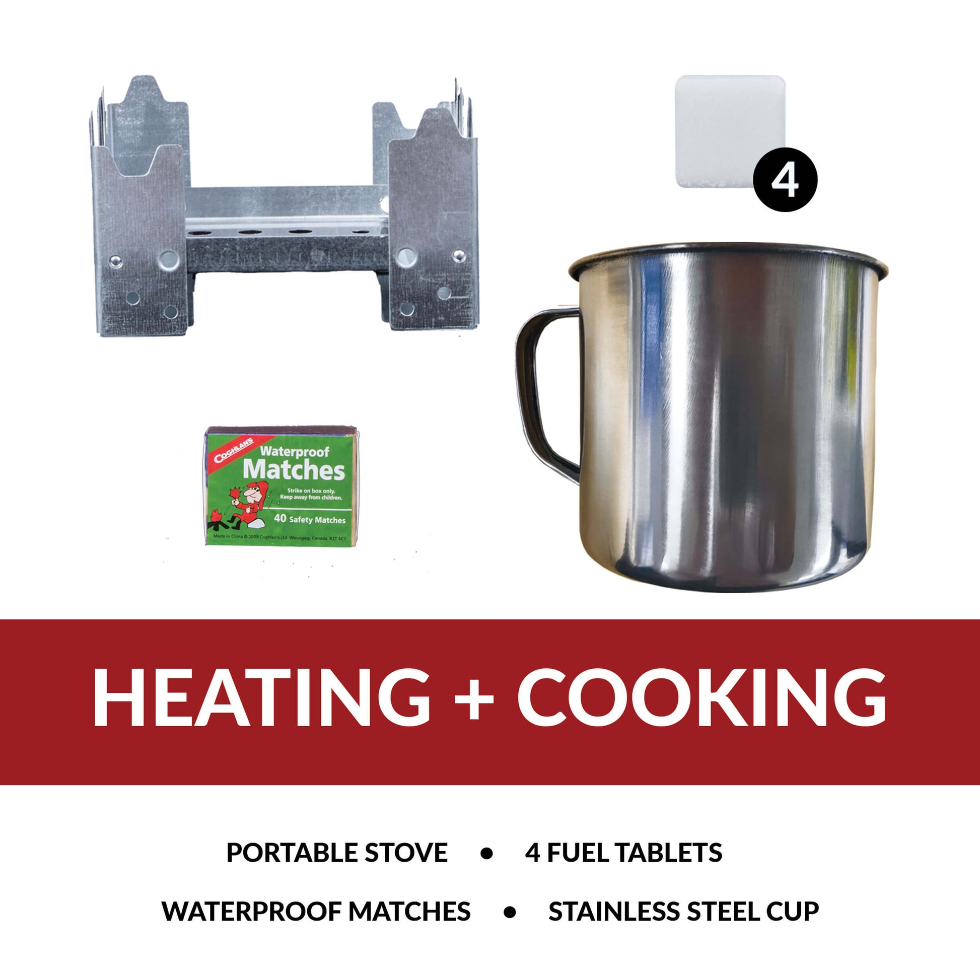 The Red 64 Piece Survival Backpack provides you with everything from first aid necessities to waterproof matches. It even includes 32 servings of entree options to keep you replenished and energized for the days ahead and a portable stove to simplify reconstitution.