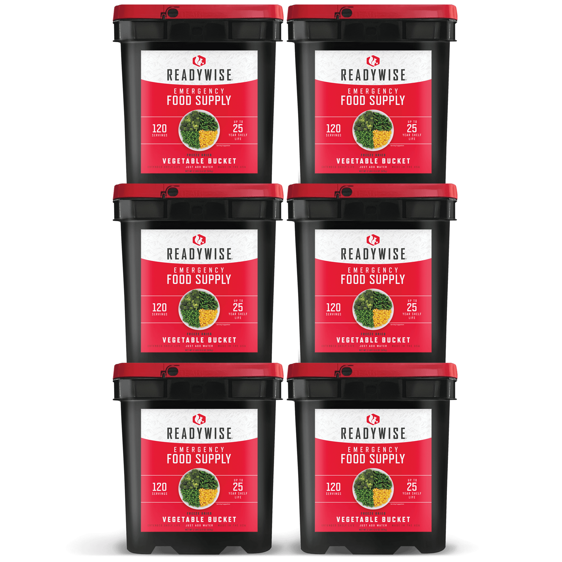 6 buckets of Vegetables. A Variety of Corn, Peas, Broccoli and Green Beans