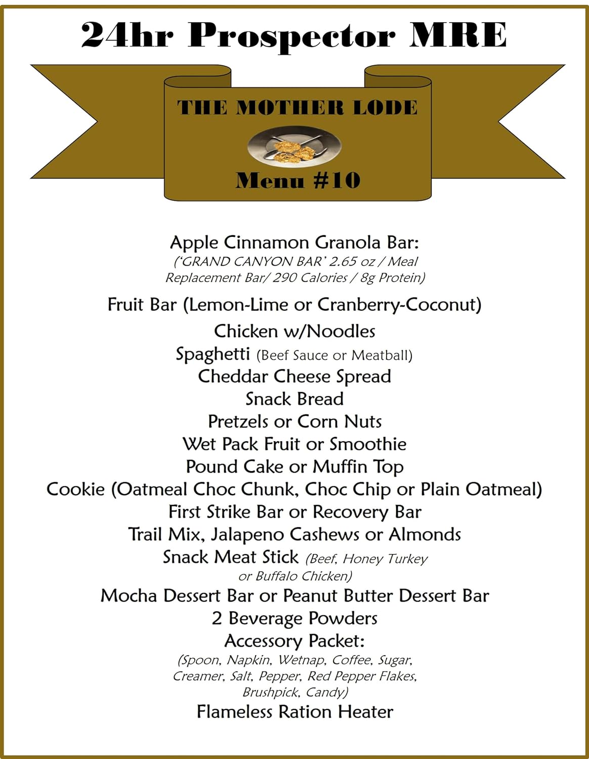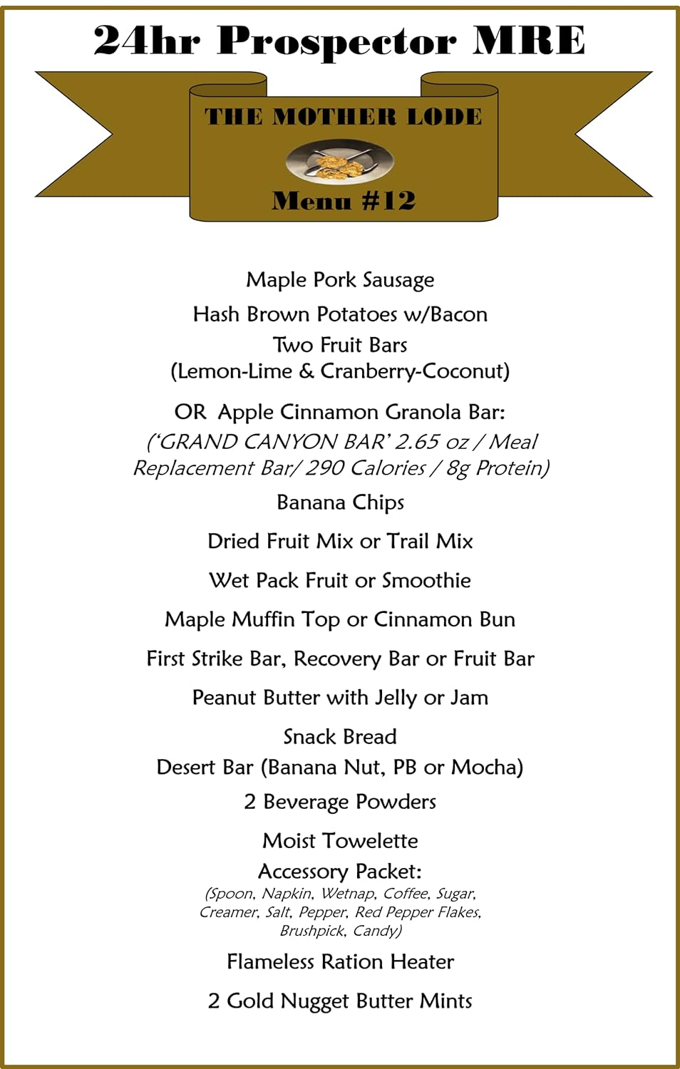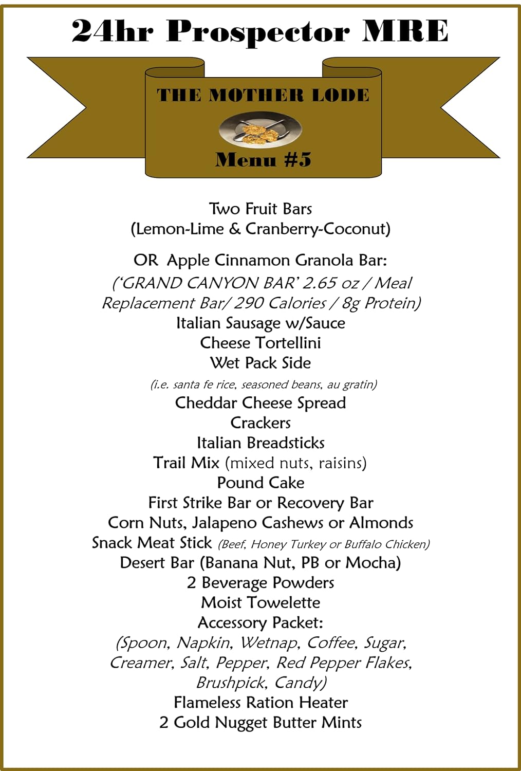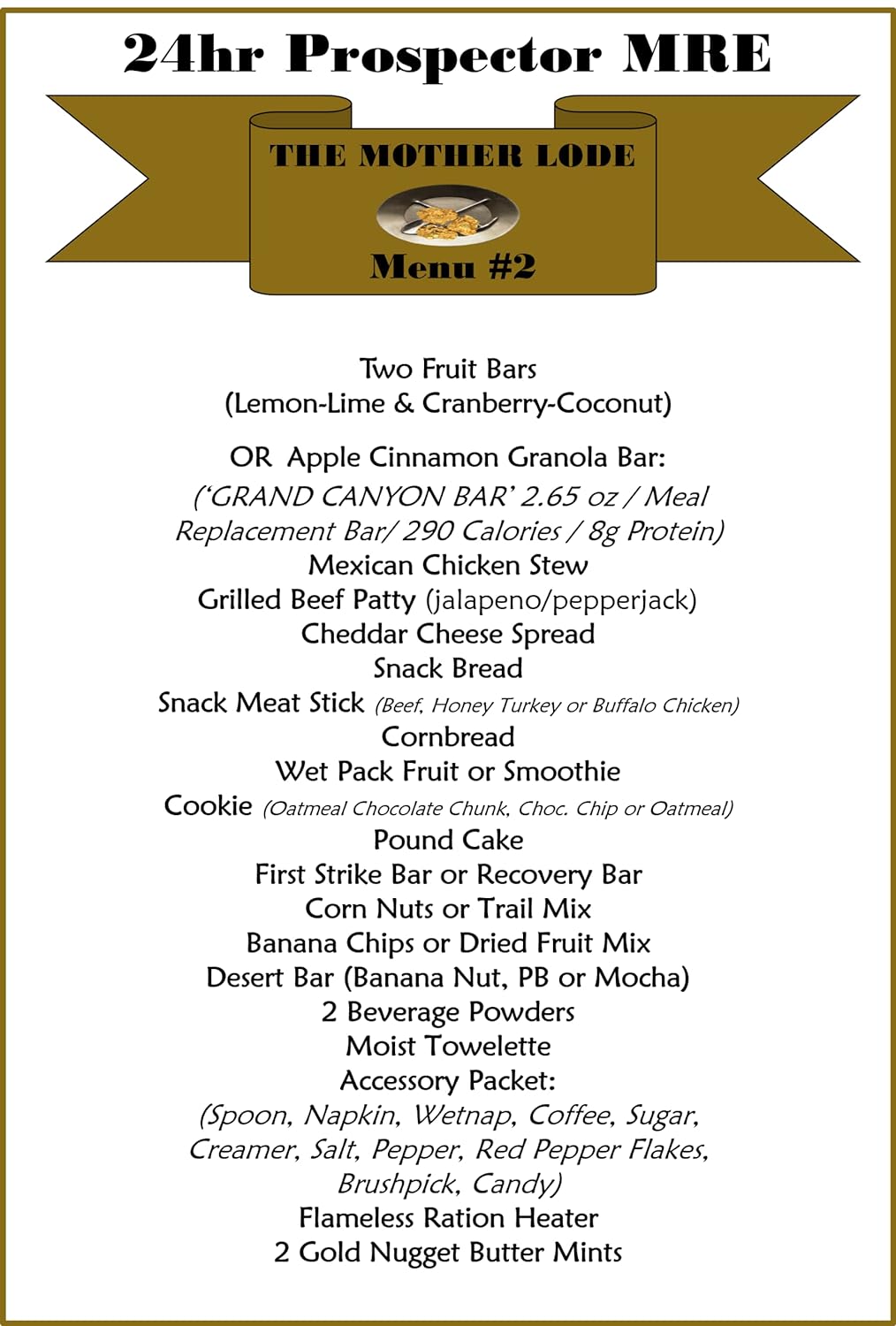 Introducing our latest line of custom MRE’s: 24hr Prospector MRE (THE MOTHER LODE) in menu’s 1-12!